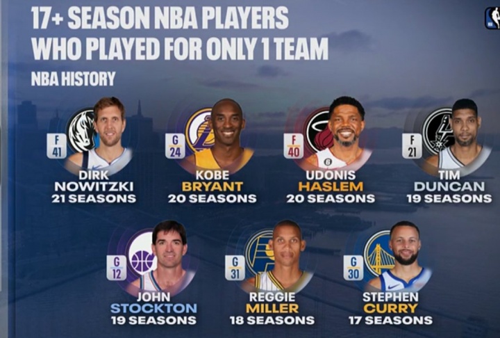 忠诚!一人一城17+赛季名单:司机&科比&邓肯领衔 现役仅库里